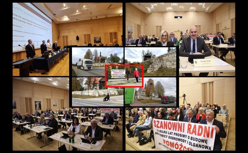 Mieszkańcy głos zabrali najpierw podczas konferencji radnych z klubu Polskiego Stronnictwa Ludowego, którzy podkreślali że popierają mieszkańców w dążeniu do budowy obwodnicy. Ta pozwoliłaby wyprowadzić ruch tranzytowy z ich miejscowości.