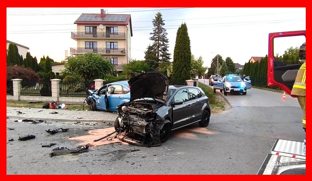 Jak poinformował aspirant sztabowy Tomasz Piwowarski, oficer prasowy Komendy Powiatowej Policji w Busku-Zdroju, ze wstępnych ustaleń wynika, że 19-latka kierująca volkswagenem polo, wyjeżdżając z drogi podporządkowanej prowadzącej od Radzanowa, nie ustąpiła pierwszeństwa i uderzyła w bok forda focusa, którym kierowała 41-latka.