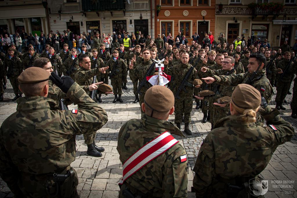 W niedzielne południe, 18 września, na pięknym sandomierskim Rynku’, opodal Ratusza, kolejni żołnierze 10 Świętokrzyskiej Brygady Obrony Terytorialnej im. mjr. Eugeniusza Gedymina Kaszyńskiego ps. ,,Nurt” złożyli przysięgę wojskową.
