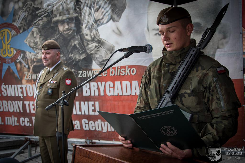 – Dziękuję Wam za zasilenie szeregów 10 Świętokrzyskiej Brygady Obrony Terytorialnej. Życzę, by duma z żołnierskiego munduru niezmiennie towarzyszyła Wam w dalszej drodze, a przysłowiowe żołnierskie szczęście sprzyjało w osiąganiu zamierzonych celów. – napisał do żołnierzy Minister Obrony Narodowej Mariusz Błaszczak w liście odczytanym przez kpt. Marcina Kowala.