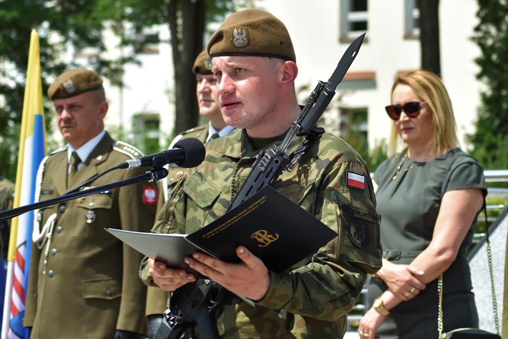 ○ Przysięga blisko 60 nowych żołnierzy 10. Świętokrzyskiej Brygady Obrony Terytorialnej odbyła się 27 czerwca o godzinie 12:00 na terenie koszar wojskowych na kieleckiej Bukówce. / fot. Daniel Woś / źródło: 10.ŚBOT