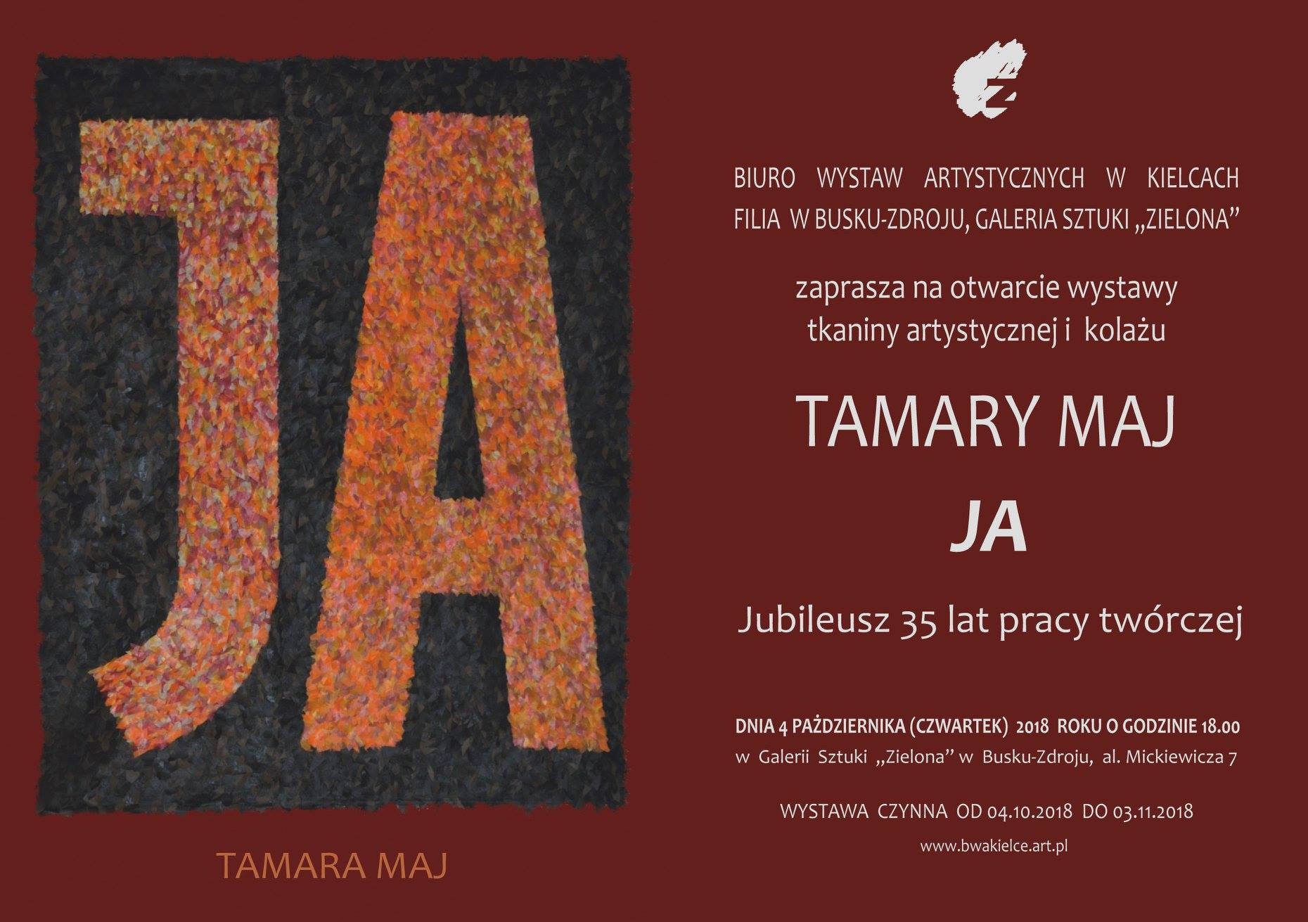 Biuro Wystaw Artystycznych zaprasza do galerii „Zielona” w Busku-Zdroju na wystawę autorstwa Tamary Maj z okazji 35-lecia jej pracy twórczej. Tkaniny i collage będą prezentowane od 4 października do 3 listopada 2018 roku.
