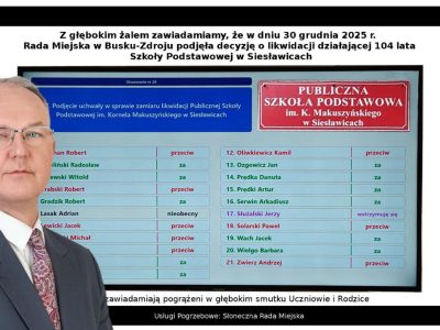 Buscy radni, mimo stanowiska Ministerstwa Edukacji Narodowej, licznych próśb rodziców i mimo apelu Dyrektor Poradni Psychologiczno Pedagogicznej, na XXII Sesji Rady Miejskiej 30 grudnia 2025 r. większością głosów przyjęli uchwałę intencyjną w sprawie likwidacji ponad 100-letniej Publicznej [...]