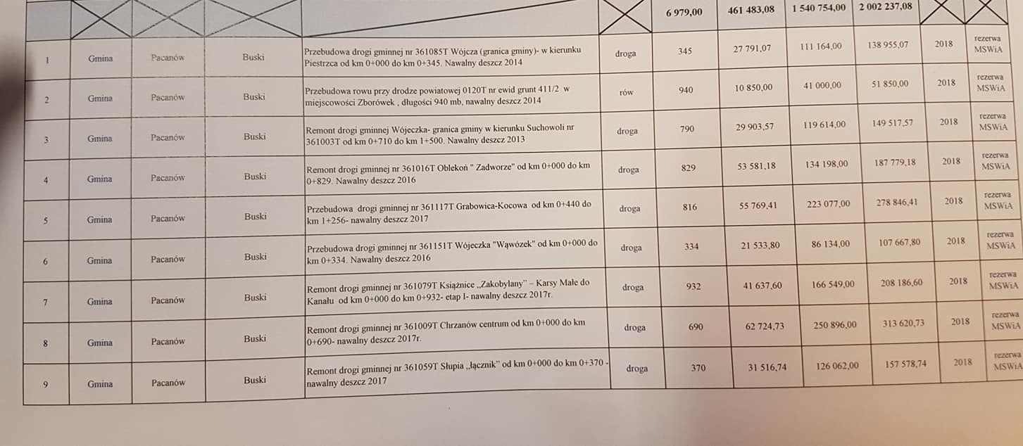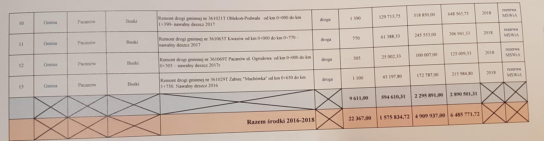 Odcinki zakwalifikowane do remontu oraz kwoty dotacji poniżej: