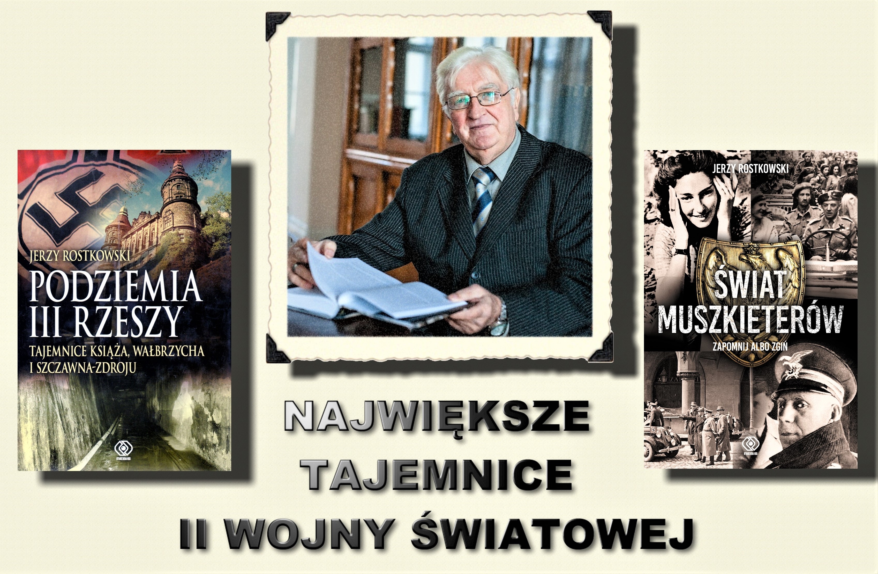 Gdzie schowano nazistowskie skarby? Prawda o „złotym pociągu”. Dlaczego nie znamy podziemi Dolnego Śląska? Kto pilnuje wojennych depozytów? Czy znamy prawdę o Monte Cassino? Muszkieterzy ostatniej wojny byli asami wywiadu i Polakami! Gwiazda sceny i filmu Mieczysława Ćwiklińska w kierownictwie polskiego wywiadu! Szef Abwehry wysyła polską agentkę do Londynu. Kto zabija po wojnie gwiazdy naszego konspiracyjnego wywiadu? Na te i inne pytania odpowie pisarz Jerzy Rostkowski 5 czerwca g. 15:00 Sanatorium Marconi Sala Koncertowa
