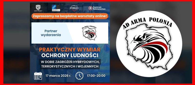 💥 Ad Arma Polonia: 🟥 PRAKTYCZNY WYMIAR OCHRONY LUDNOŚCI W DOBIE ZAGROŻEŃ HYBRYDOWYCH, TERRORYSTYCZNYCH I WOJENNYCH – Postaw na bezpieczeństwo! 17 marca 2026 – bezpłatne i certyfikowane warsztaty on-line z Obrony Cywilnej