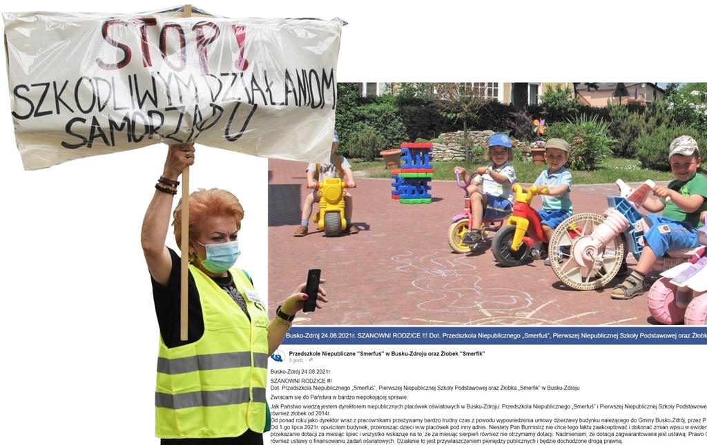 Tygodnik Ponidzia [01.09.2021]: – „Droga Redakcjo, My, rodzice dzieci uczęszczających do Przedszkola Niepublicznego „Smerfuś”, Żłobka „Smerfik” oraz Pierwszej Niepublicznej Szkoły Podstawowej w Busku-Zdroju, pragniemy wyrazić na łamach prasy nasze ogromne rozczarowanie, a nawet gniew, które są wynikiem niepochlebnych działań Gminy już od ponad roku w stosunku do naszej placówki! W ubiegłym roku zaraz po wybuchu pandemii, otrzymaliśmy wstrząsającą wiadomość o wypowiedzeniu umowy najmu na budynek przedszkola, żłobka i szkoły przy ul. Ppłk-a Srogiego 1 w Busku-Zdroju. W ciągu kilku następnych miesięcy z internetu dowiadywaliśmy się o planach pana Burmistrza, który nie zechciał ani razu spotkać się osobiście z nami-rodzicami. Pan Maroński –zastępca – również lekceważył nasze głosy sprzeciwu i nigdy nie odpowiedział na pytania: „Dlaczego?” „Co dalej?”. Nikt z Gminy nie chciał na ten temat rozmawiać! Mało tego! Tylko..♂