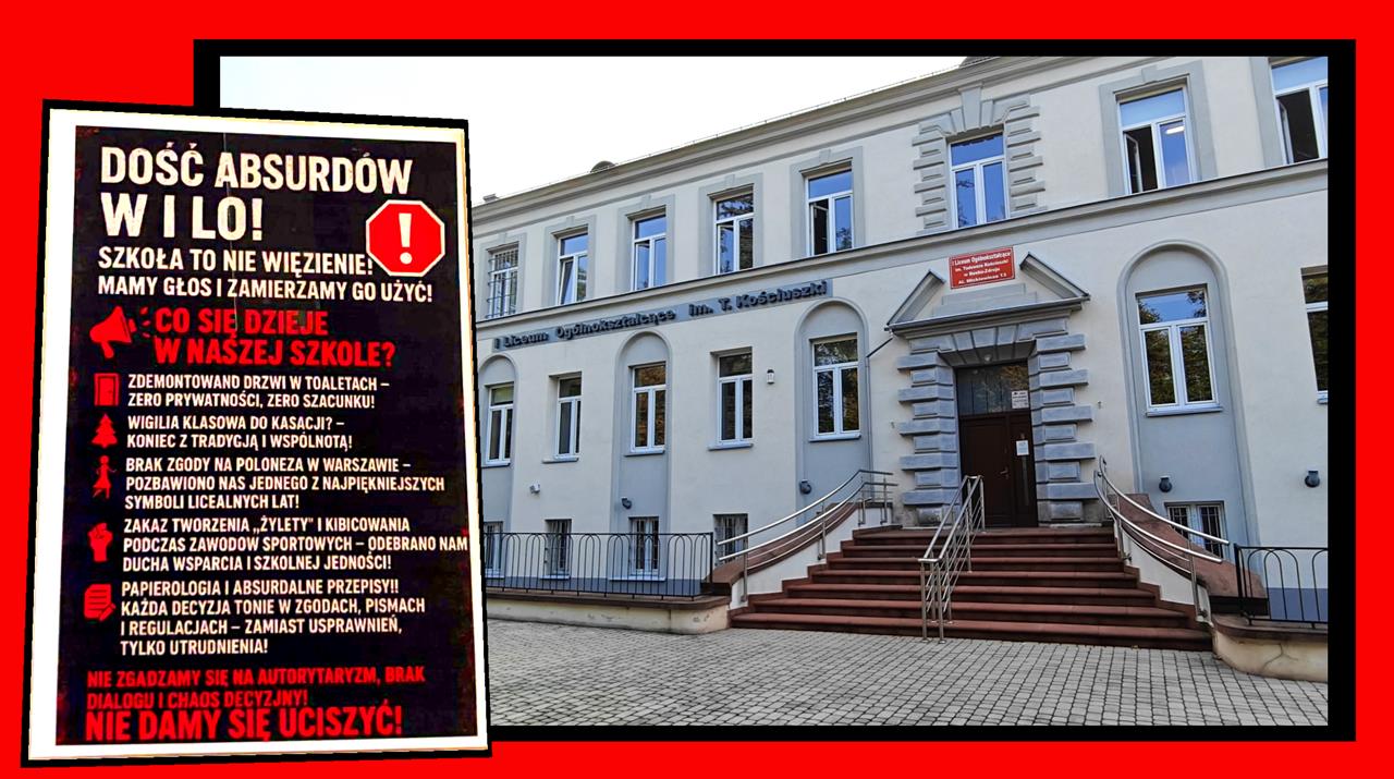 Do redakcji od rana napływają informacje o proteście uczniów I Liceum Ogólnokształcącego im. Tadeusza Kościuszki w Busku-Zdroju. W piątek w budynku szkoły pojawiły się anonimowo przyklejone plakaty z hasłami sprzeciwu wobec działań dyrekcji. – informuje 24.10.2025 portal busko.com.pl
