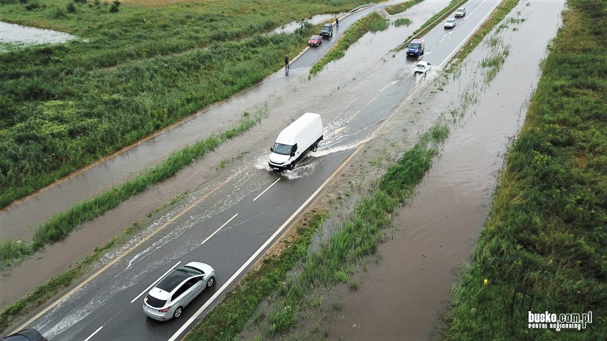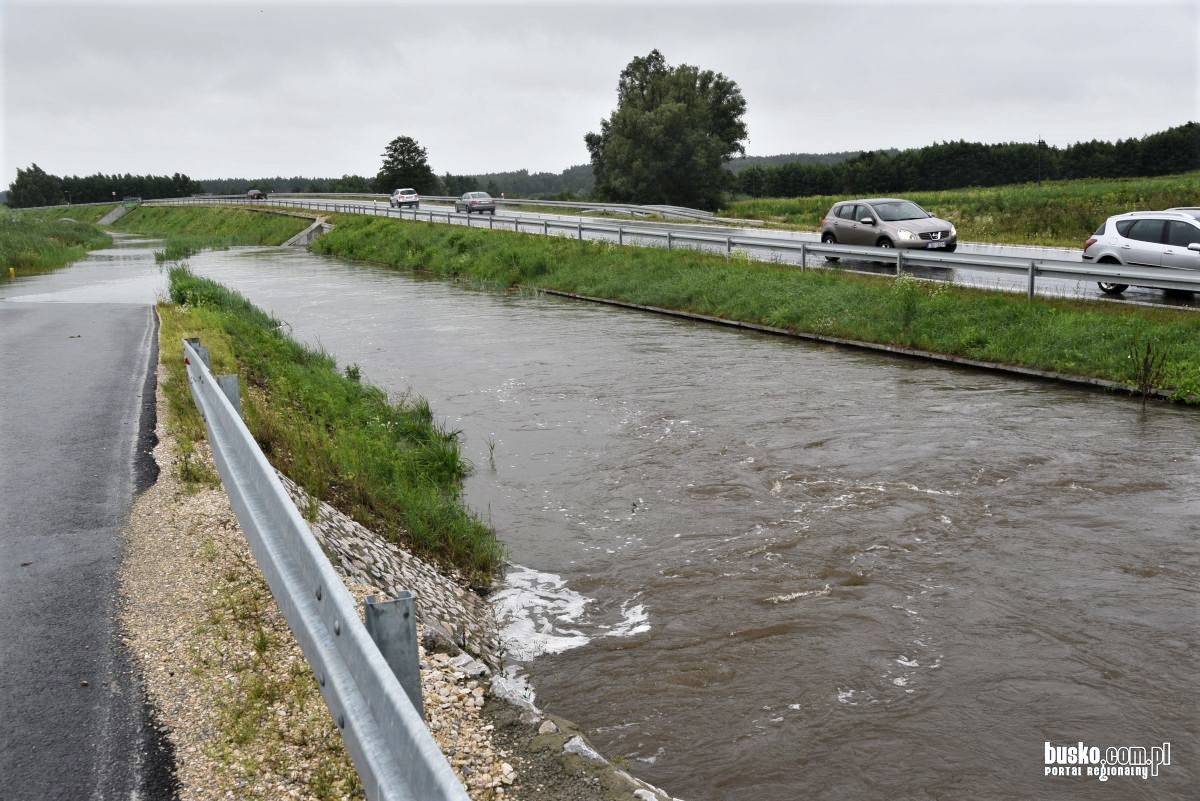 06.08.2021: Woda zalała obwodnicę na wysokości Radzanowa, fragment drogi wojewódzkiej DW973♂. / fot. busko.com.pl