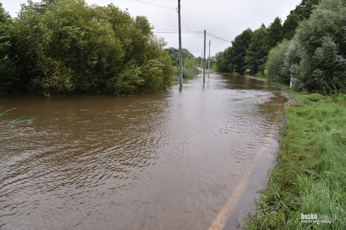 W Radzanowie wezbrana woda zalała fragment obwodnicy oraz drogi Busko – Nowy Korczyn, na wysokości Stawu PZW♂ / fot. busko.com.pl