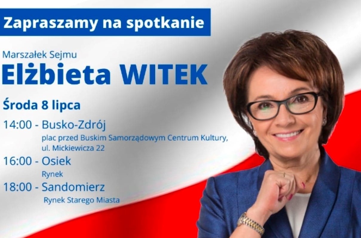 W zeszłym tygodniu Marszałek Sejmu Elżbieta Witek, podczas wizyty w naszym regionie, odwiedziła Wiślicę, Pińczów i Skalbmierz. Dziś spotka się z mieszkańcami Buska-Zdroju, Osieka i Sandomierza.