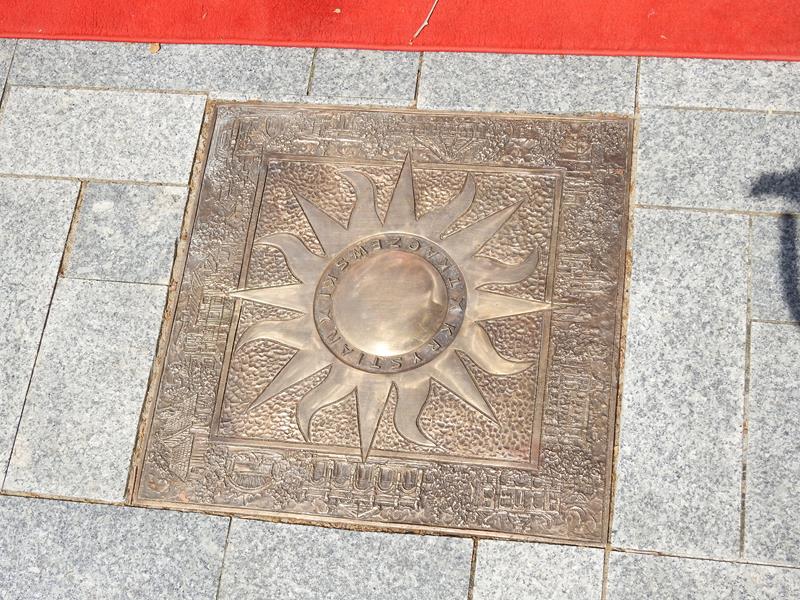 ○ Busko-Zdrój, 23.07.2023: Dr Krystian Tkaczewski i burmistrz Waldemar Sikora przy kolejnym słoneczku w Buskiej Alei Gwiazd. / fot. Jarosław Kruk infoBusko.pl