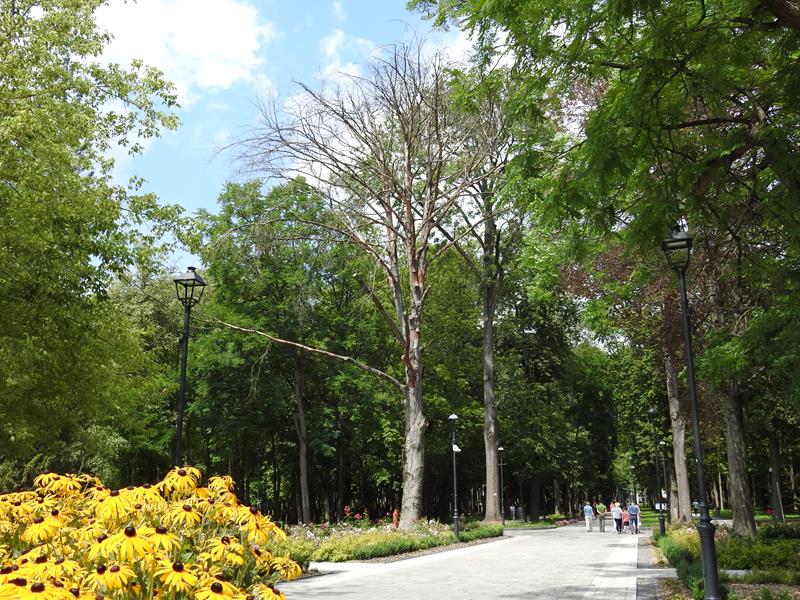 W Parku Zdrojowym są już sztuczne ptaki, które pięknie śpiewają od rana do wieczora. Może więc za jakiś czas, po następnej rewitalizacji, będą i sztuczne drzewa, które będą dawać cień i ochłodę przez cały rok, bo nie będą zrzucać liści na zimę. Może to będą palmy podobne do tej postawionej na rondzie gen. Charles’a de Gaulle’a w Warszawie. Przyszłość Parku jest nieodgadniona a geniusz wodza jest niedościgniony.