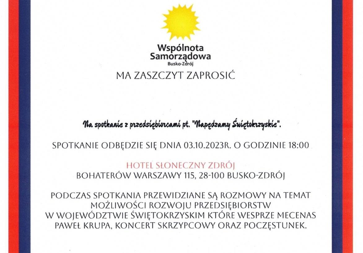bcpl: Wspólnota Samorządowa zaprasza przedsiębiorców na spotkanie "Napędzamy Świętokrzyskie"- Hotel Słoneczny Zdrój, 3.10.2023, godz. 18:00 [VIDEO | FOTO] - Internetowy Portal Informacyjny Mieszkańców Miasta i Gminy Busko-Zdrój