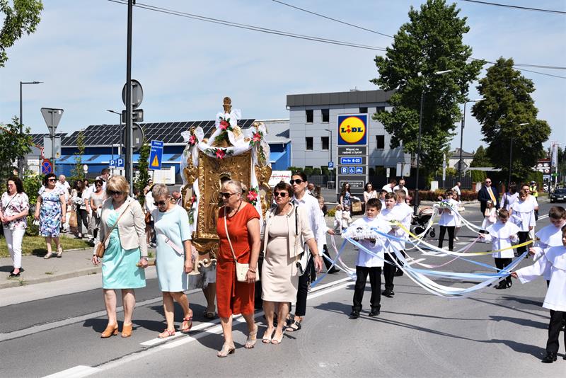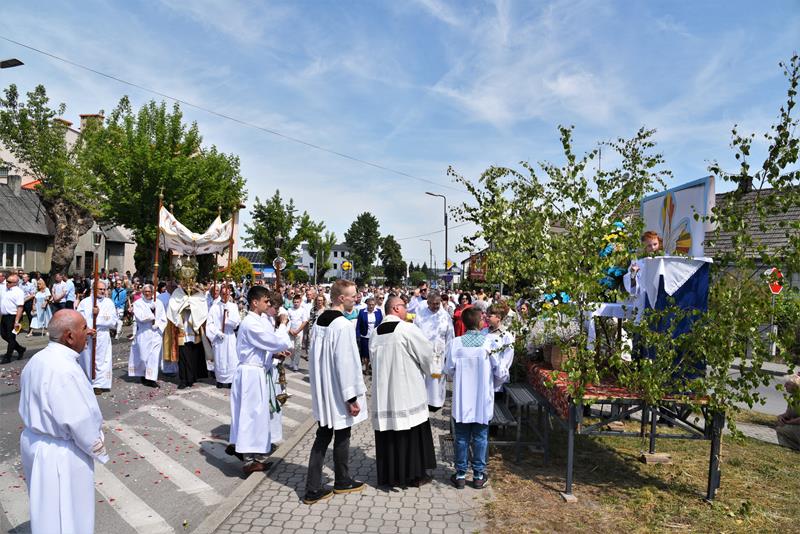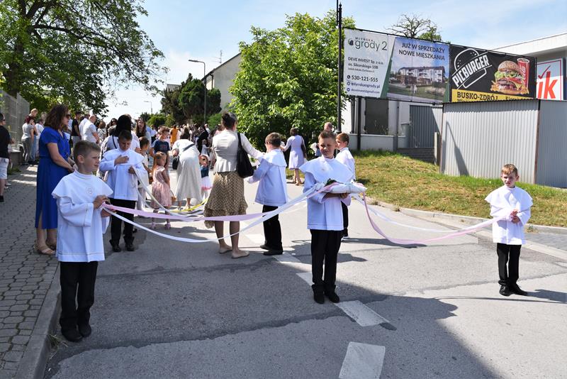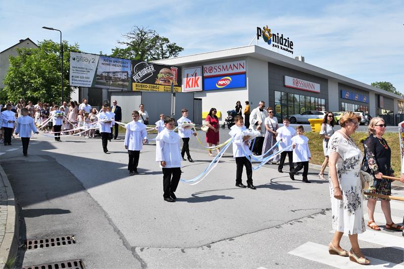 Tłumy wiernych wzięły udział w czwartkowej uroczystości Najświętszego Ciała i Krwi Chrystusa w parafii Niepokalanego Poczęcia Najświętszej Maryi Panny w Busku-Zdroju 16 czerwca 2022 r. Po przedpołudniowej Mszy Świętej odbyła się procesja eucharystyczna do czterech ołtarzy tradycyjną trasą: ulicami Staszica, Prusa, Wojska Polskiego i Sądową. Nauka rekolekcyjna, z kazaniem ks. proboszcza Tadeusza Szlachty miała miejsce tradycyjnie przy trzecim ołtarzu, na ulicy Wojska Polskiego. Uroczystości w parafii NPNMP gromadzą w Busku najwięcej wiernych.