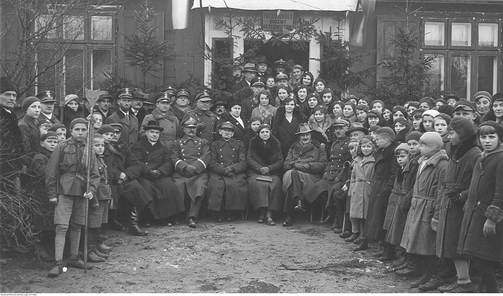2. Poświęcenie świetlicy i przedszkola Związku Rezerwistów RP w osadzie Irena k. Dęblina. W pierwszym rzędzie siedzi gen. Bolesław Frej, obok niego Aleksander Uchnast; 1933 / Źródło Narodowe Archiwum Cyfrowe; Wikipedia♂