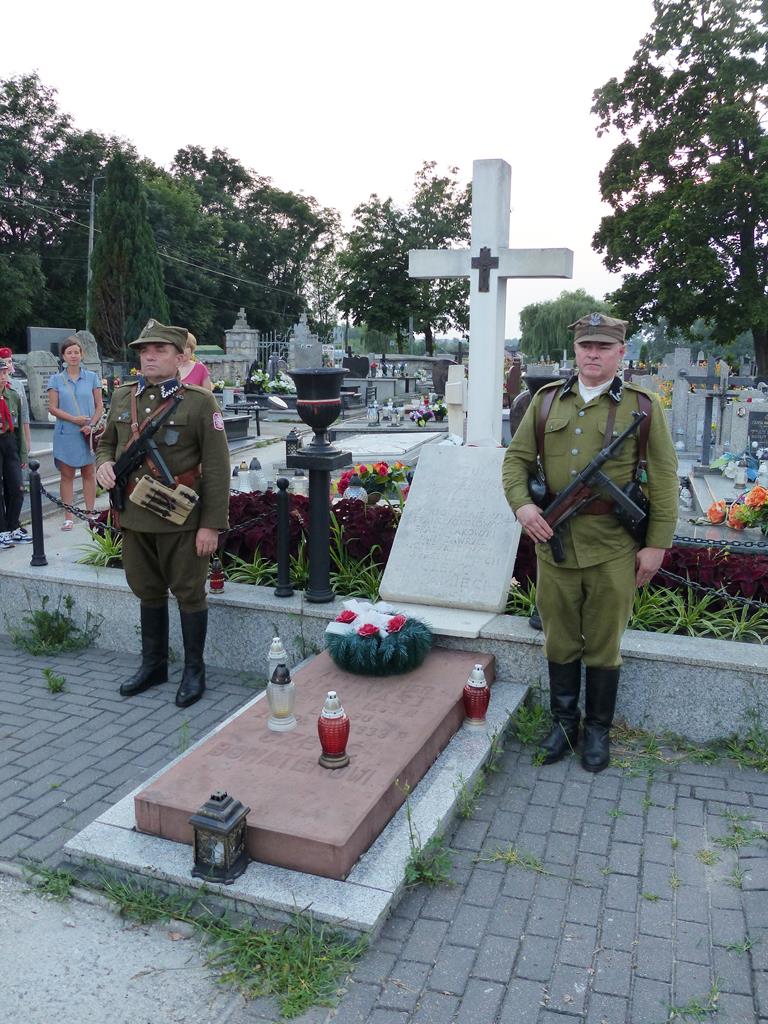3. Warta honorowa przy grobie Aleksandra Uchnasta♂ rekonstruktorów z  mieleckiej GRH im. Wojciecha Lisa ps. „Mściciel”♂ na cmentarzu parafilanym w Busku-Zdroju, 16 lipca 2021 r.♂ / fot. Jerzy Flis