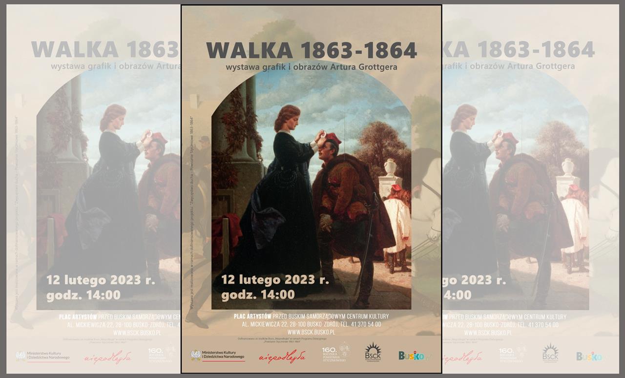 Buskie Samorządowe Centrum Kultury zaprasza na wystawę prac Artura Grottgera „Walka 1863-1864”. Wernisaż odbędzie się 12 lutego 2023 o godz 14:00 na Placu Artystów przed budynkiem BSCK przy Al. Mickiewicza 22.