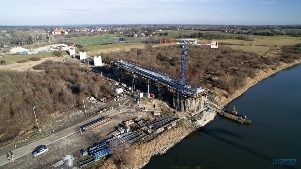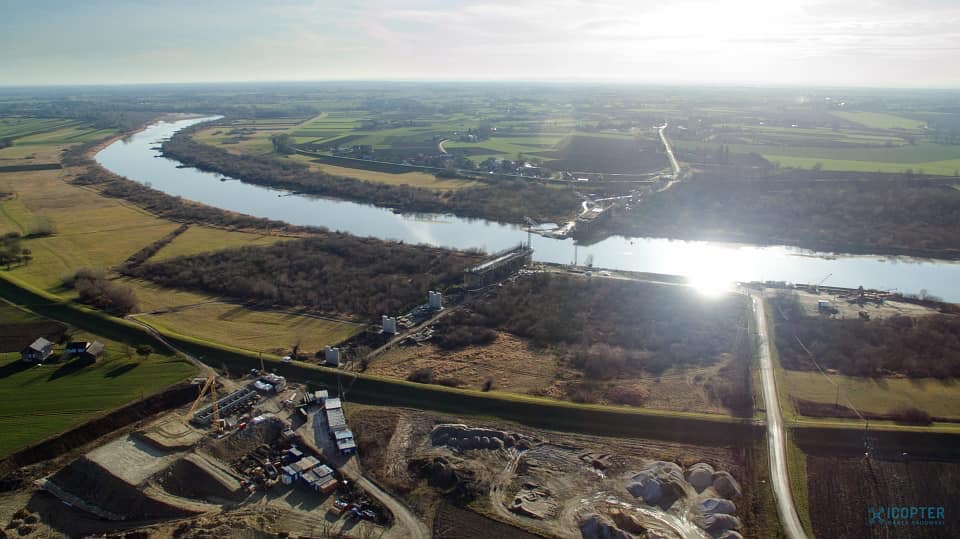Budowa mostu w Nowym Korczynie idzie pełną parą. (ZDJĘCIA Z DRONA) – może warto zachować prom?