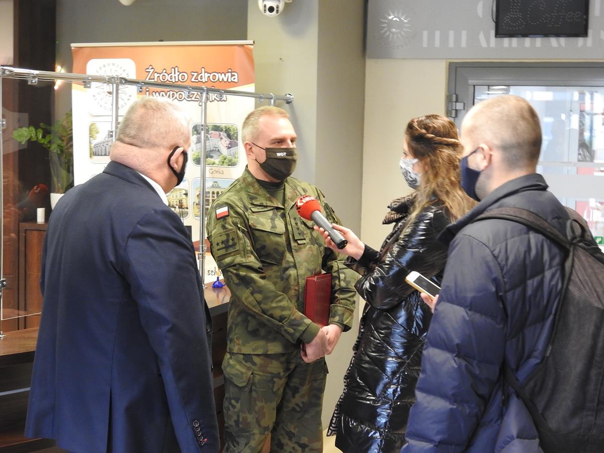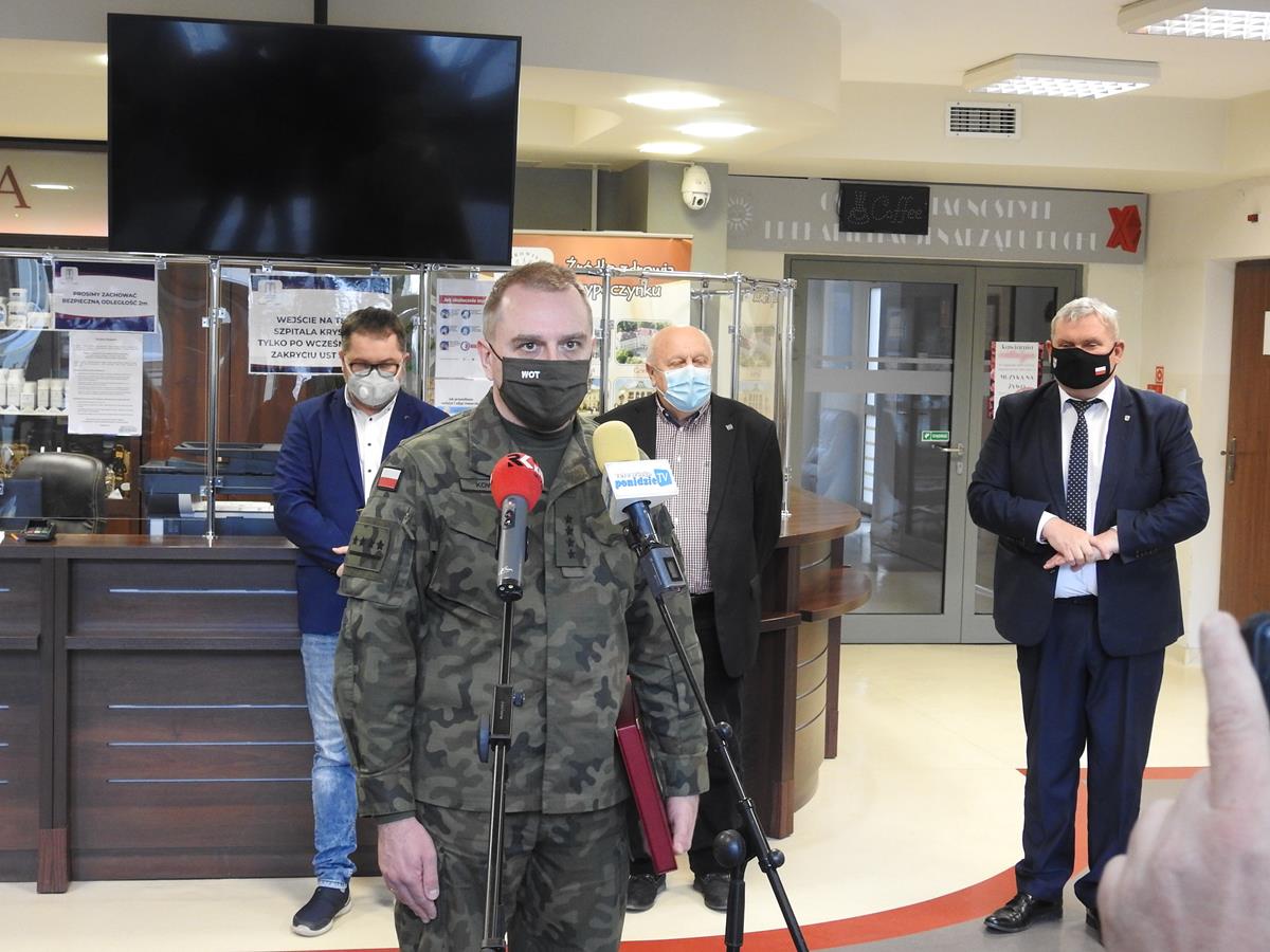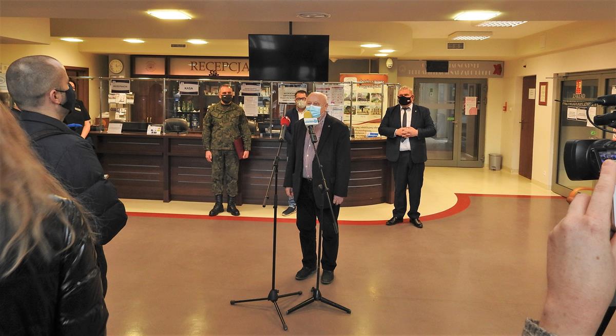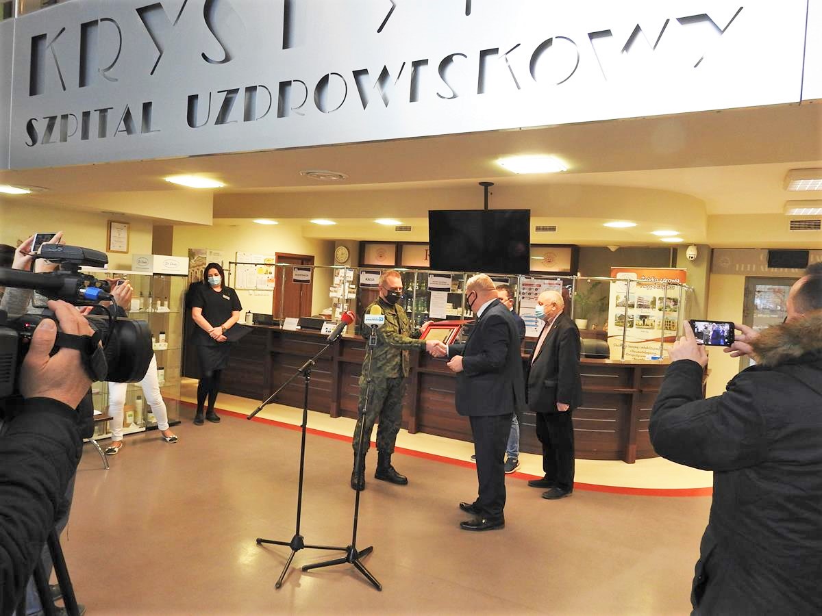 Zwołana w piątek, 12 marca, konferencja prasową rozpoczęła się podziękowaniem Terytorialsom i wręczeniem pamiątkowego grawertonu dla Jednostki Wojsk Obrony Terytorialnej z Kielc za pomoc w trakcie walki z pandemią.