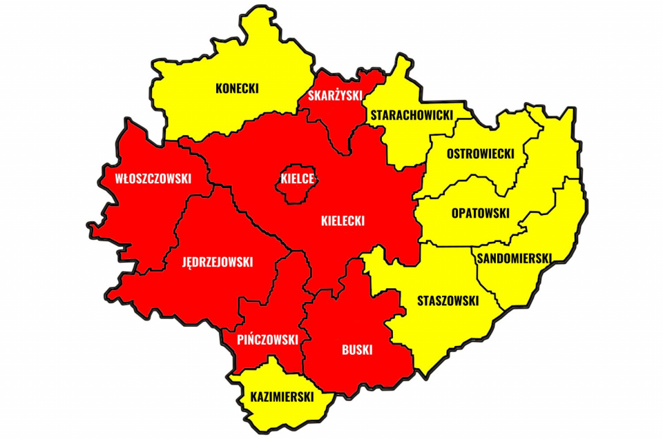 Od 17 października w całym kraju obowiązywać będą nowe zasady bezpieczeństwa. W strefie czerwonej znajdą się 152 powiaty, głównie miasta i duże ośrodki. W województwie świętokrzyskim, oprócz Kielc i powiatu kieleckiego, od najbliżej soboty dodatkowe obostrzenia będą obowiązywać także w powiatach: buskim, jędrzejowskim, pińczowskim, skarżyskim i włoszczowskim. –