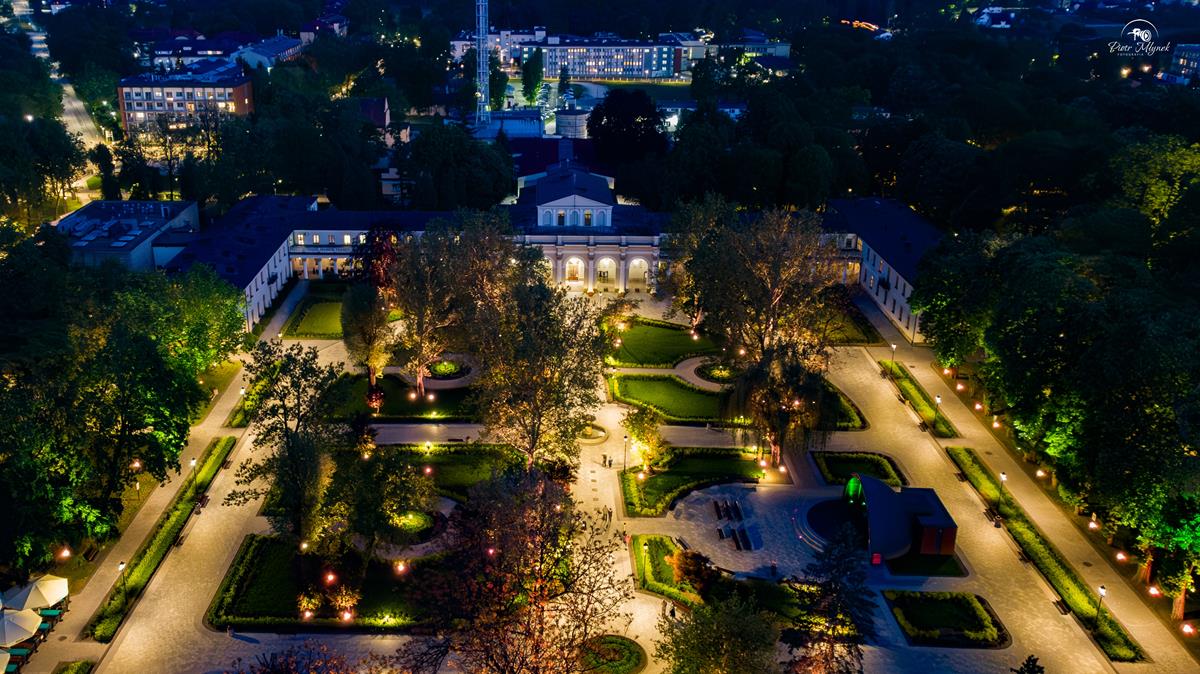 ○ … Park składa się z dwóch części. Jego sercem jest uporządkowany, regularny i symetryczny ogród francuski, w pełni eksponujący piękno budynku łazienek projektu Henryka Marconiego. Tę regularną część otacza z trzech stron prawdziwy tajemniczy ogród, czyli park w stylu angielskim o nieregularnym układzie nasadzeń i alei… / fot. Piotr Młynek♂; tekst: PTTK- Świętokrzyskie szlaki turystyczne♂