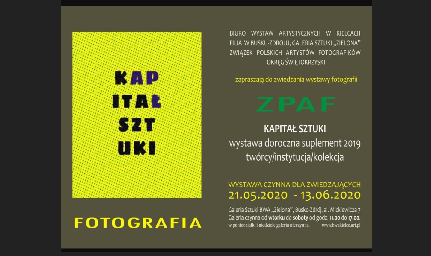Biuro Wystaw Artystycznych w Kielcach, Galeria Sztuki „Zielona” i Związek Polskich Artystów Fotografików Okręg Świętokrzyski zapraszają do zwiedzania wystawy fotografii eksponowanej od 21 maja w Busku-Zdroju w salach Willi Polonia.