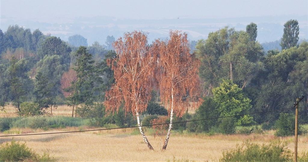 ○ Dobrowoda, 21.07.2022 r.: Wśród drzew, pierwszymi, widocznymi z daleka ofiarami upałów i suszy latem 2022 są brzozy… / fot. Jarosław Kruk infoBusko.pl