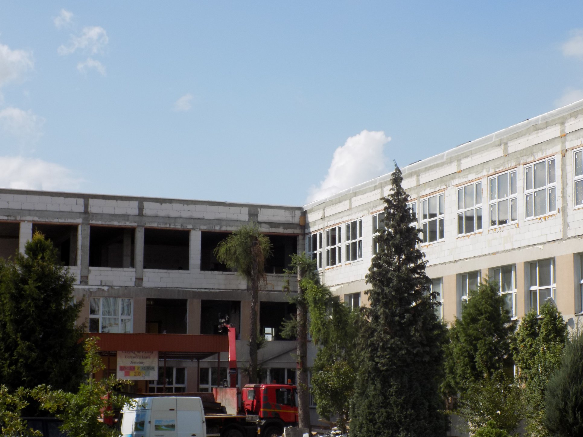 3 września rozpoczyna się rok szkolny. Czy ekipy zdążą z dokończeniem inwestycji? Trudno ocenić czy jest to możliwe, kiedy budunek wygląda na stan surowy a do końca wakacji pozozstało niewiele ponad dwa tygodnie. Moim zdaniem, należało zbudować nową część szkoły jako osobny budynek z krótkim łącznikiem. Jednak zdecydowano się na nadbudowę, czy jest to słuszne rozwiązanie? Okaże się 3 września. Do tej pory jednak rodzice dzieci są zdezorientowani dokąd pójdą ich dzieci we wrześniu. – informuje redakcję działacz społeczny pan Kamil Oliwkiewicz