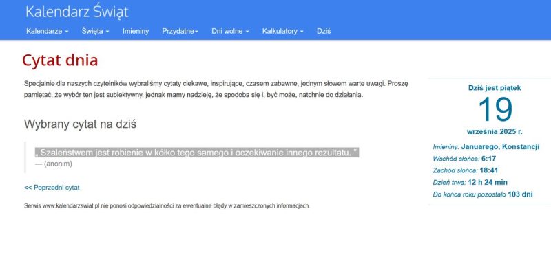 Cytat dnia 19.09.2025: „ Szaleństwem jest robienie w kółko tego samego i oczekiwanie innego rezultatu. ”