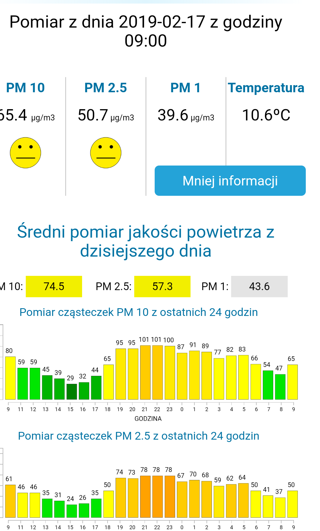 Pomiar cząsteczek PM 10 z ostatnich 24 godzin