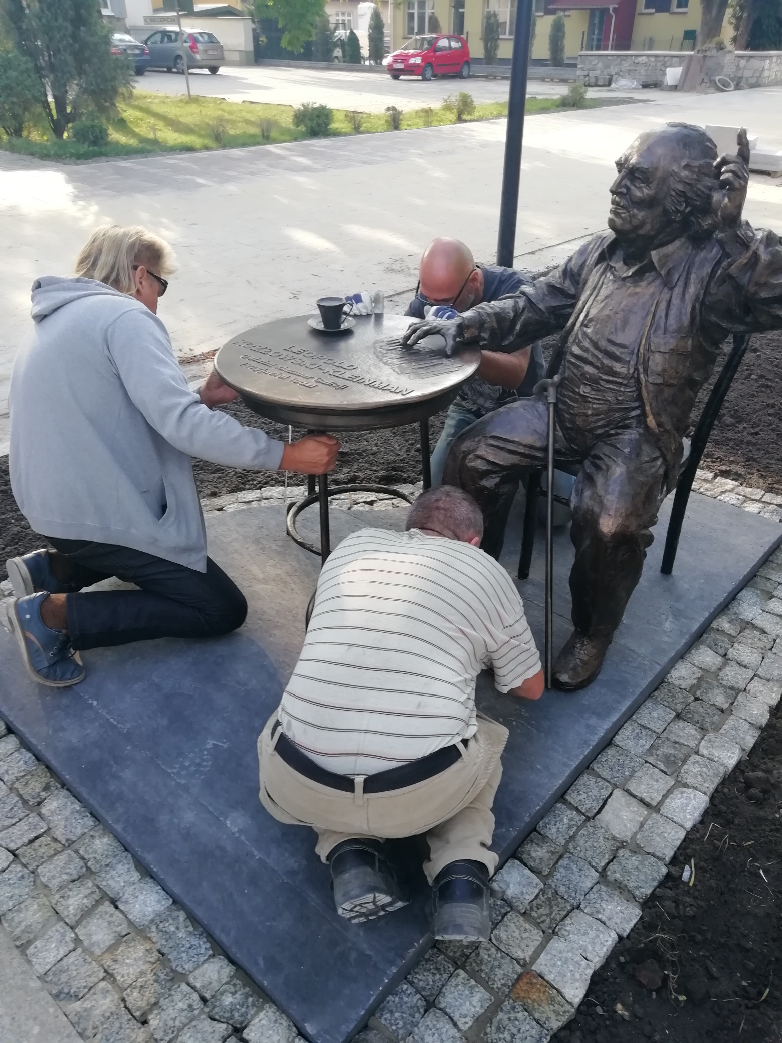 Mam taką praktyczną uwagę do osób odpowiedzialnych za figurę pana Leopolda (władze Buska? władze Uzdrowiska?), aby solidnie umocowali ten obiekt. Jak wiadomo brąz to cenny metal, a znając życie, może być różnie. Żeby potem się nie okazało, że figura była piękna, wspaniała, ale słabo przymocowana i jacyś złomiarze sobie wzięli pod pachę pana Leopolda albo stolik i poszli siną dal…