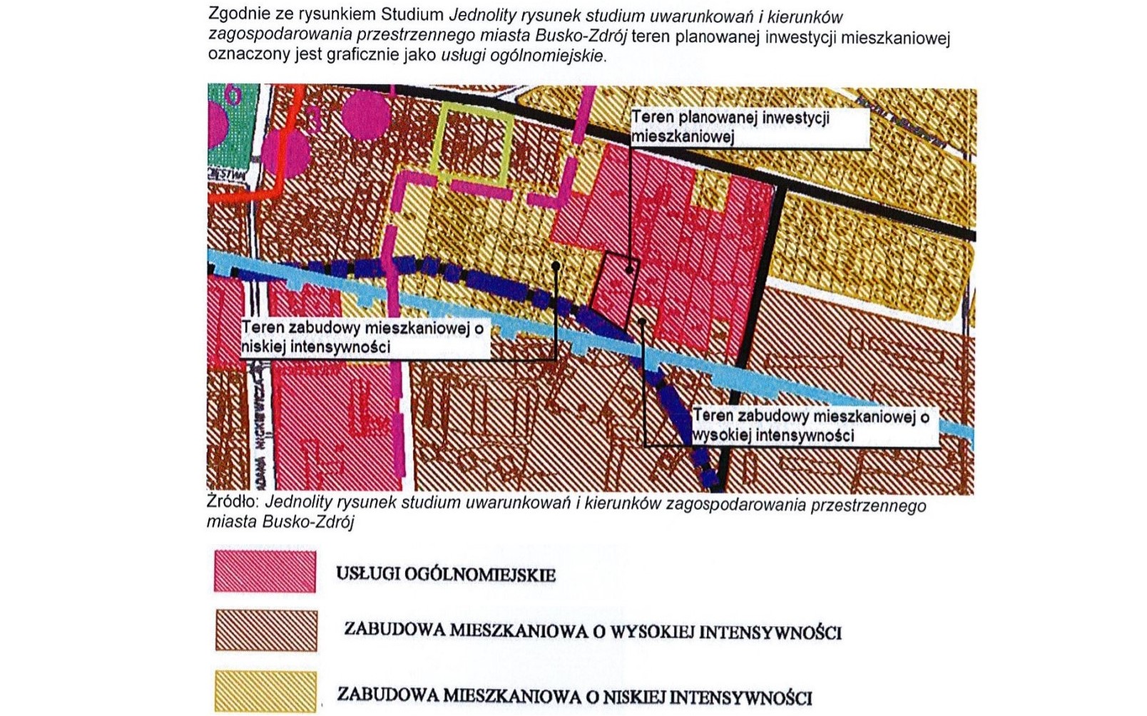 ciekawe co o tej osobliwej wspaniałomyślności buskich radnych myślą poprzedni właściciele działki o nr ewid. gr. 488/6 położonej w obrębie 6 przy ul. Batorego w Busku-Zdroju? Ciekawe czy poprzedni właściciele wiedząc, że w ten sposób okazuje się łatwy i szybki sposób można zmienić studium uwarunkowań i kierunków zagospodarowania przestrzennego dla tej działki z przeznaczonej pod usługi ogólnomiejskie czyli sklepik, poczta, biuro, gabinet, na teren do zabudowy mieszkaniowej o wysokiej intensywności to sprzedaliby za taką samą cenę? Przypuszczam, że różnica wartości metra kwadratowego działki pod usługi względem metra działki pod mieszkaniówkę o wysokiej intensywności może być i dziesięciokrotna.