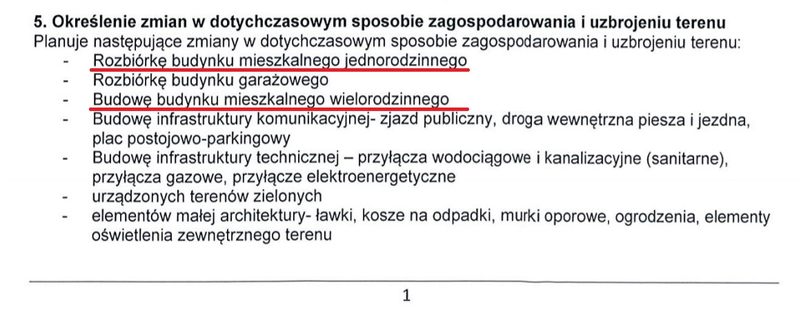 We wniosku zawarta jest informacja, ze w miejsce budynku jednorodzinnego ma powstać budynek wielorodzinny