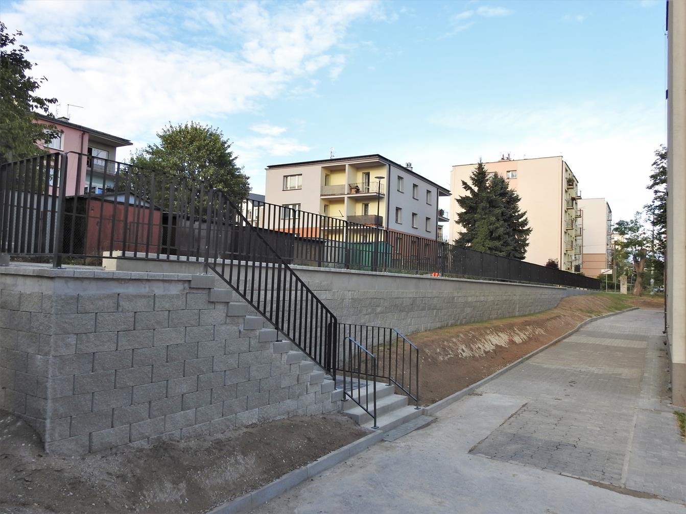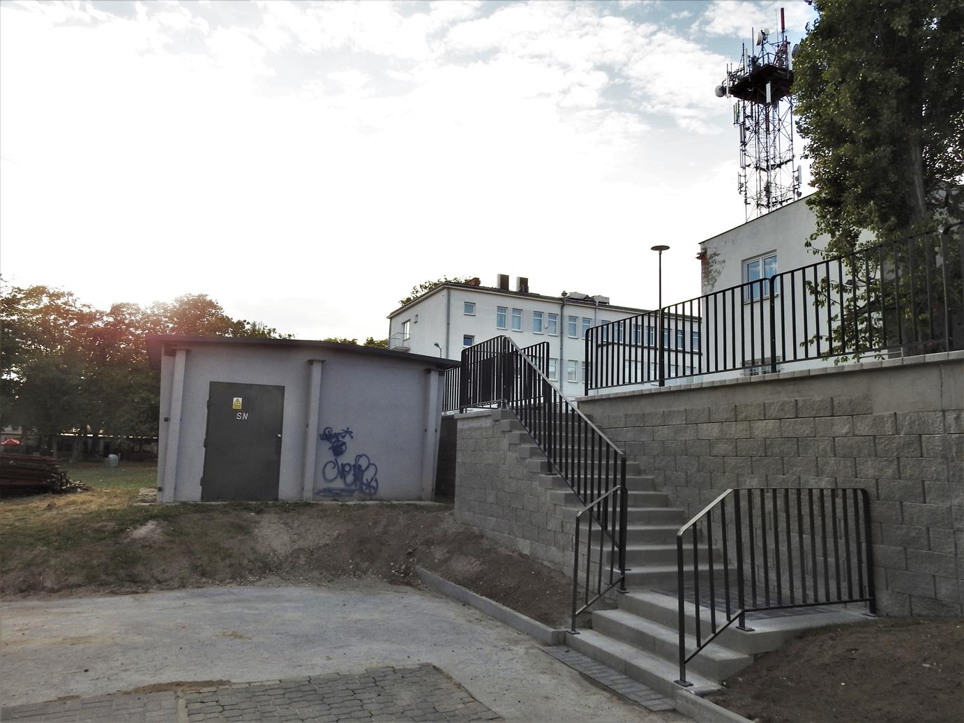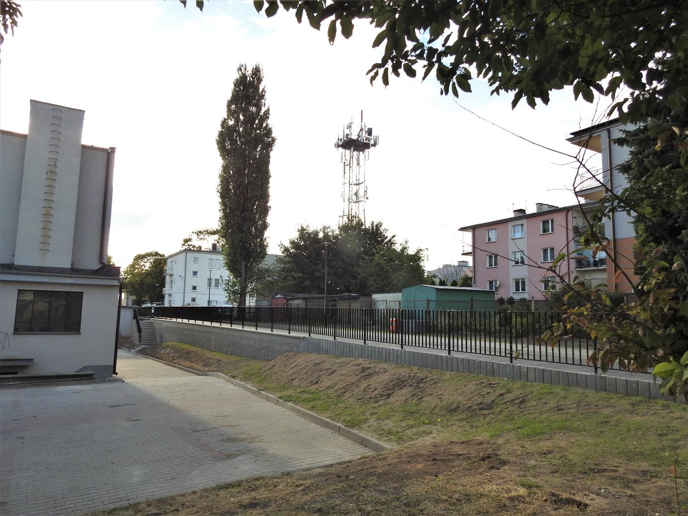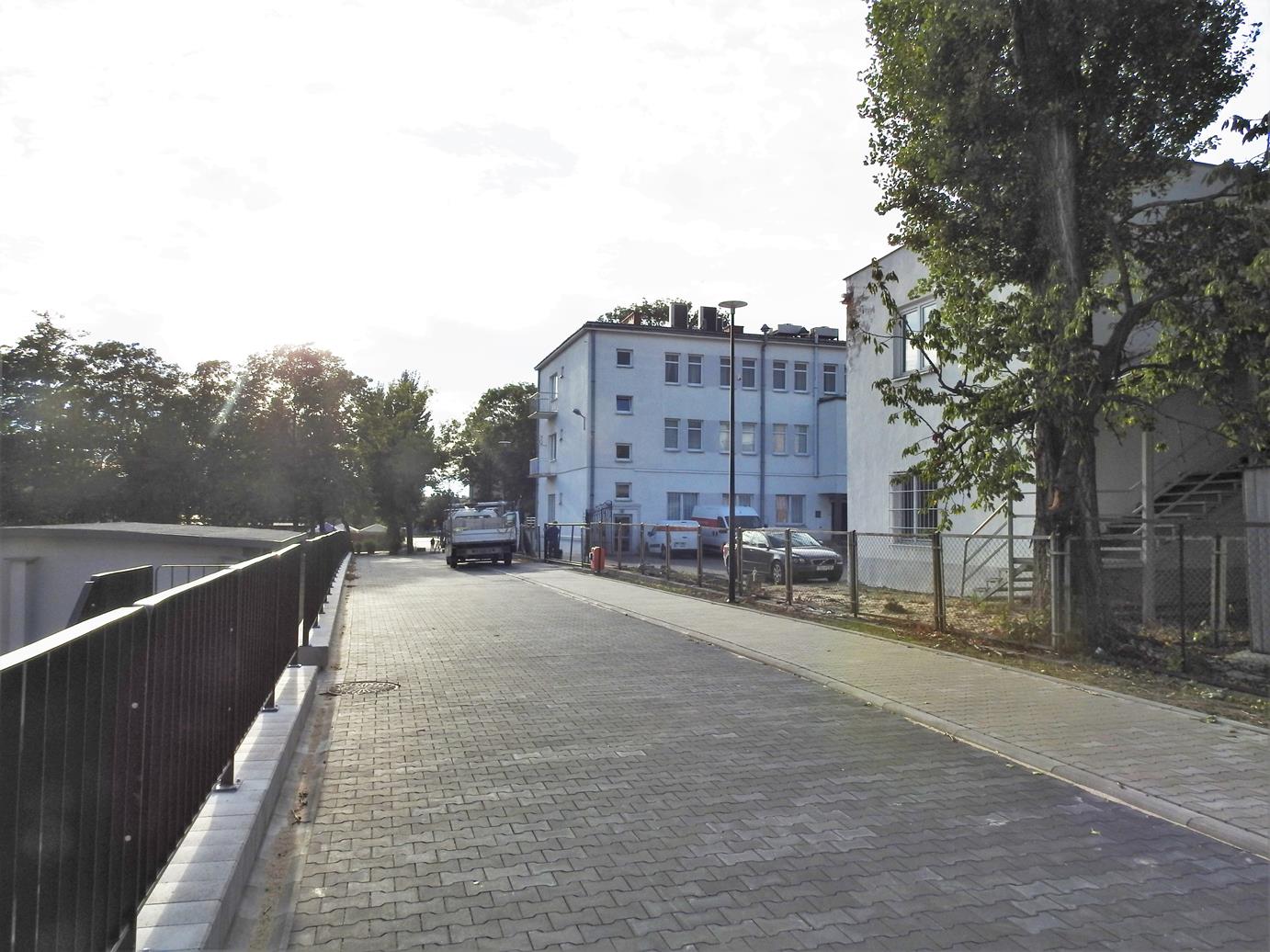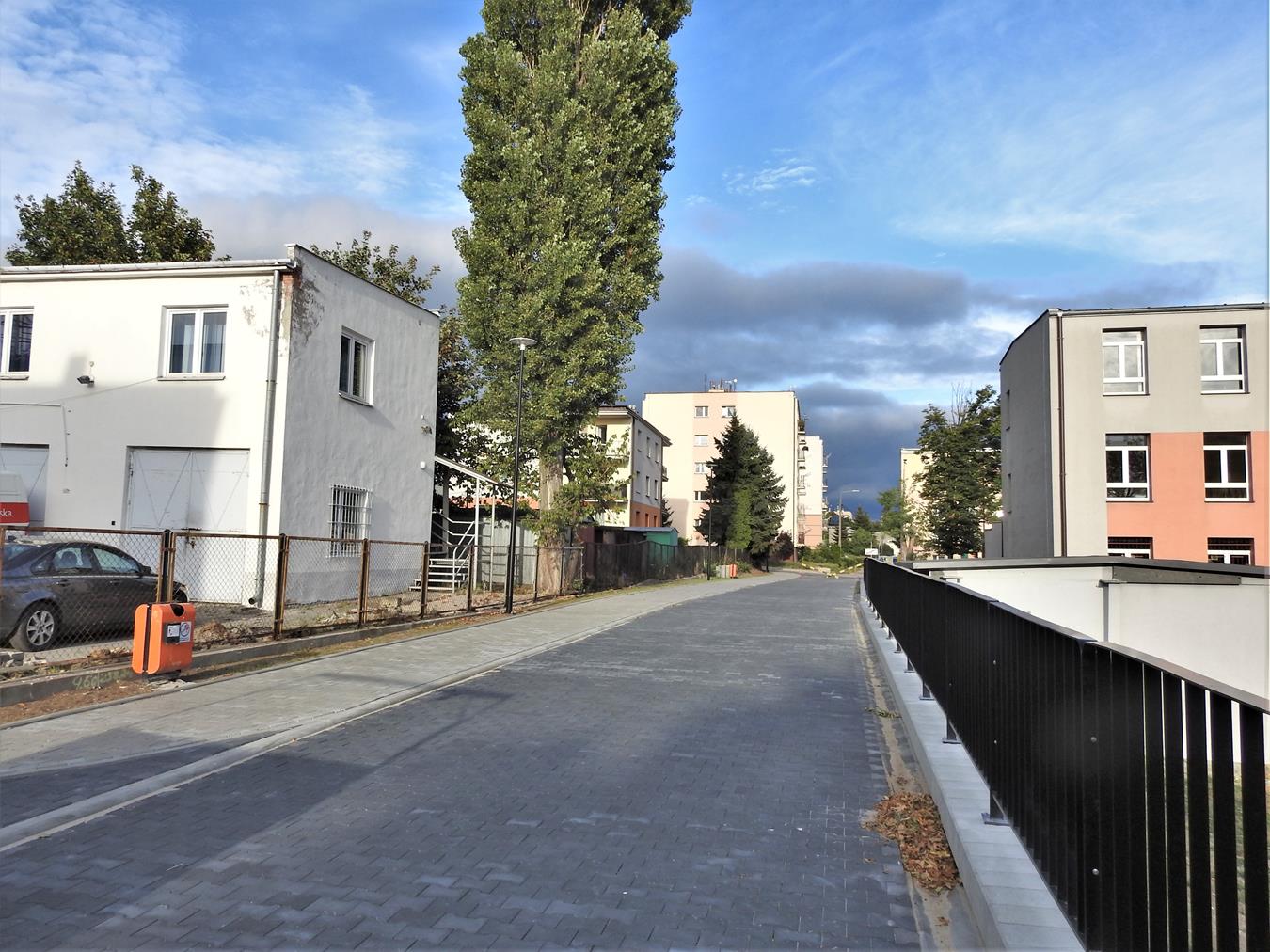 W ubiegłym roku ten krótki pieszy pasaż zyskał nazwę upamiętniającą jednego z nauczycieli „Ogólniaka”. Pojawiły się wtedy zapowiedzi jego rozbudowy mającej obejmować m. in. budowę jezdni. Miałem nadzieję, że to pomyłka, bo przecież ani nie ma takiej potrzeby, ani możliwości z uwagi na stojącą tam stację trafo. Niestety, to nie była omyłka, ani żart. Wybudowany wysoki mur oporowy „o włos” omija transformator. Brakło już jednak miejsca na zieleń. Dotychczas chodnik był otoczony od strony „Kościuszki” szpalerem kilkunastoletnich drzew. Natomiast od strony poczty głównej był zwykły trawnik. Teraz trawnik został zastąpiony betonową pustynią, bo w jego miejscu znajduje się teraz chodnik, a w miejscu chodnika jezdnia z dwoma pasami ruchu. Kolidujące drzewa zostały wycięte.