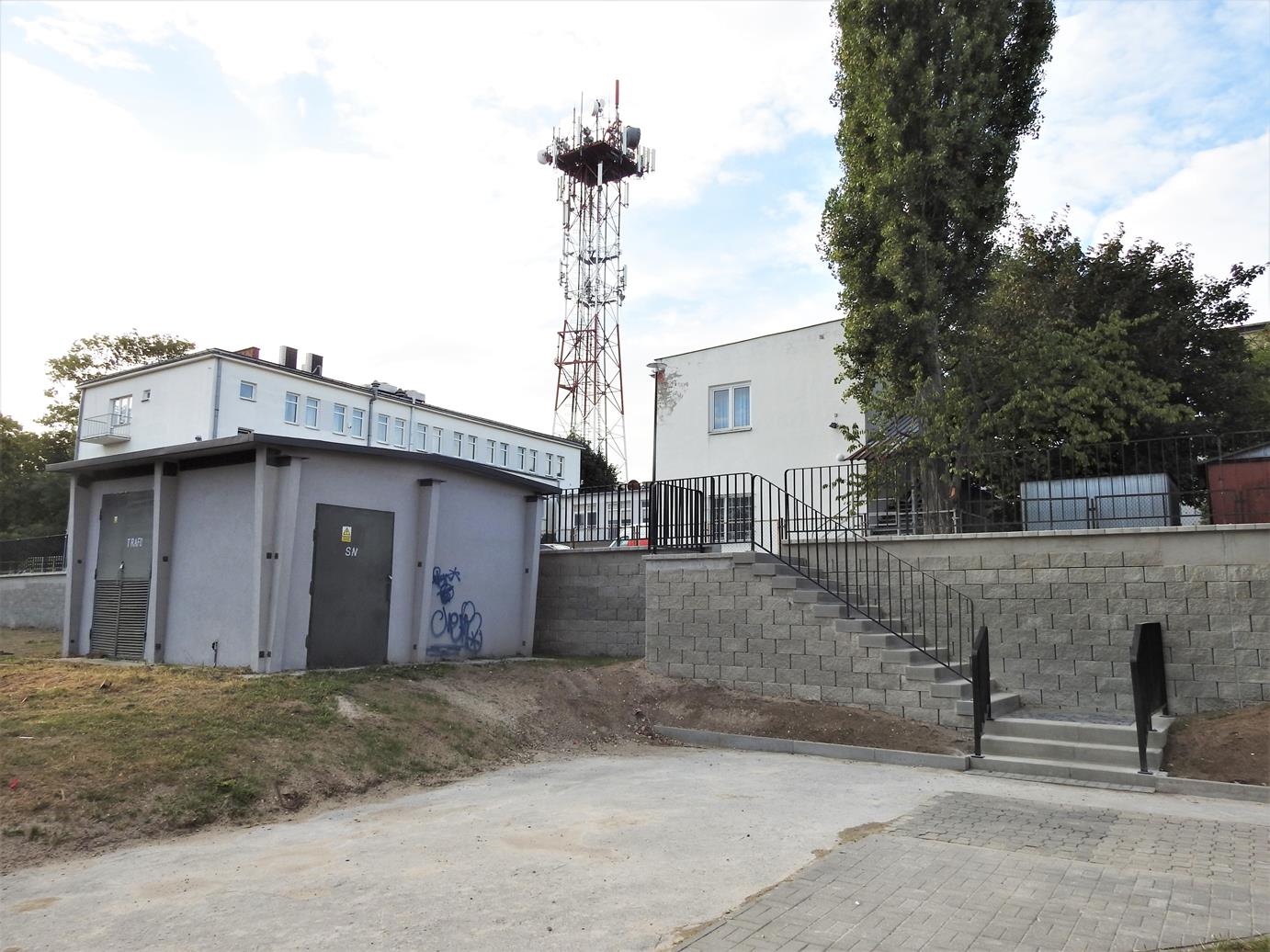 ○ Poprowadzona wierzchem wysokiego, wzmocnionego murem oporowym nasypu ulica Józefa Czernikiewicza umożliwia dojazd do Poczty z ul. Armii Krajowej.