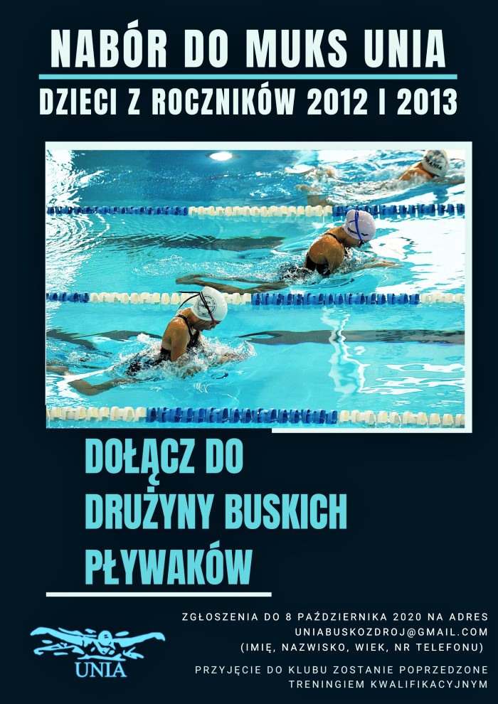 Licencja Polskiego Związku Pływackiego, pełny profesjonalizm, doświadczona i wykwalifikowana kadra, fachowe treningi i przede wszystkim wychowankowie, którzy wywalczyli już kilkanaście medali Mistrzostw Polski to właśnie Międzyszkolny Uczniowski Klub Sportowy UNIA przy Pływalni Miejskiej w Busku-Zdroju. MUKS UNIA ogłasza właśnie nabór dzieci z roczników 2012 i 2013.