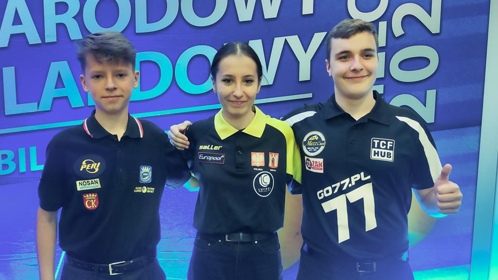 Na Mistrzostwa Świata Juniorów 2022, które zostaną rozegrane w dniach 18-21 listopada w Portoryko, pojedzie trójka reprezentantów Polski (od lewej): Michał Wiech, Dominika Pawełczyk, Szymon Kural  / źródło: Polski Związek Bilardowy♂