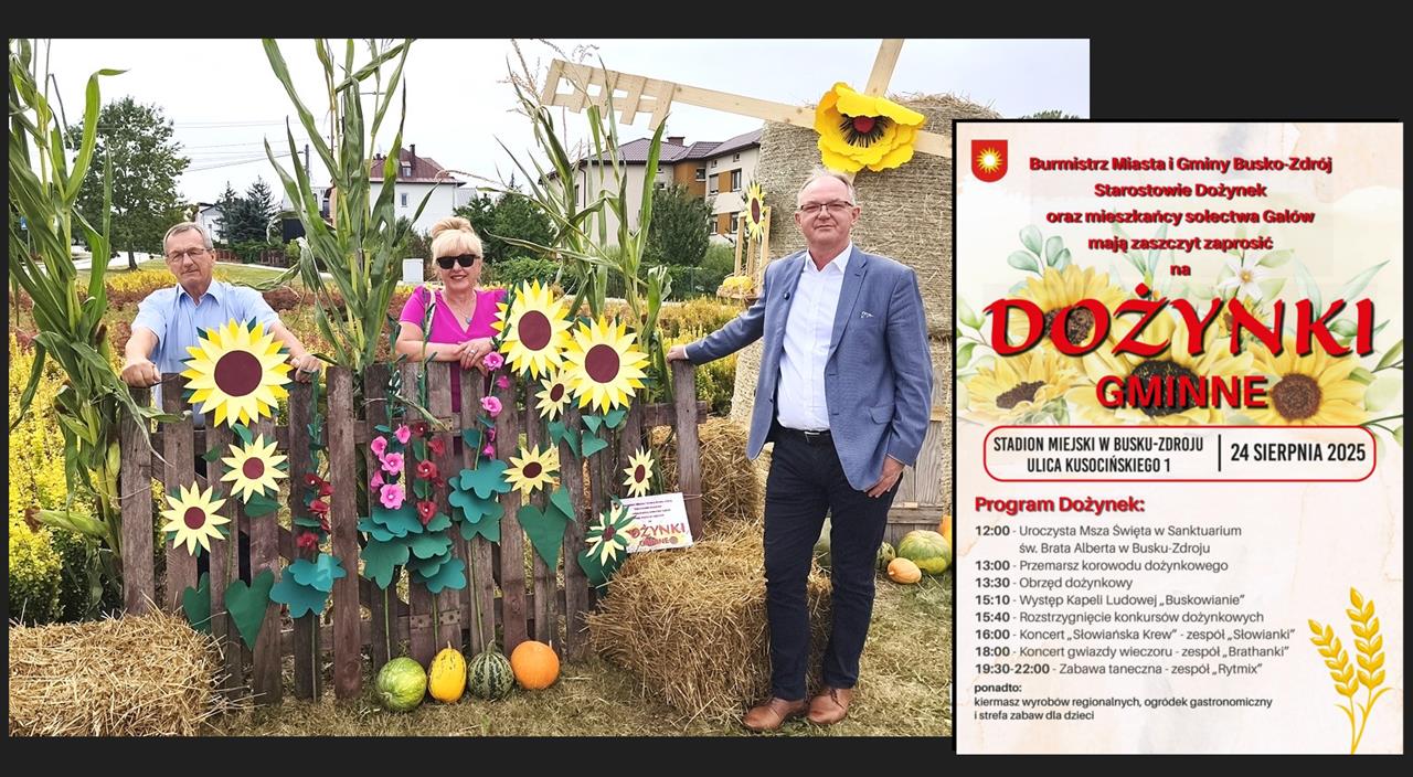 ○ Burmistrz Miasta i Gminy Busko-Zdrój Jerzy Szydłowski, starościna dożynek Renata Rynia oraz starosta dożynek Jan Gręda zapraszają mieszkańców i gości na Dożynki Gminne w niedzielę, 24 sierpnia 2025 roku. / źródło: busko.com.pl♂