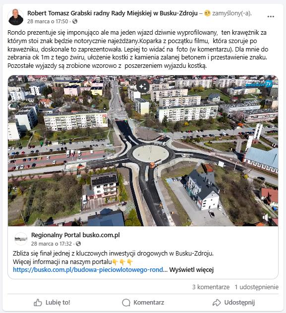 „Zbliża się do końca gruntowna przebudowa ważnego WĘZŁA komunikacyjnego po wschodniej stronie Buska-Zdroju” – niedouczonemu redaktorowi oraz jeszcze bardziej niedouczonemu Mierzwie i urzędnikom RSID UMiG pokroju Trelińskiego i Przyborowskiej-Ryś polecam zapoznać się z definicją WĘZŁA drogowego (może być z Wikipedii).