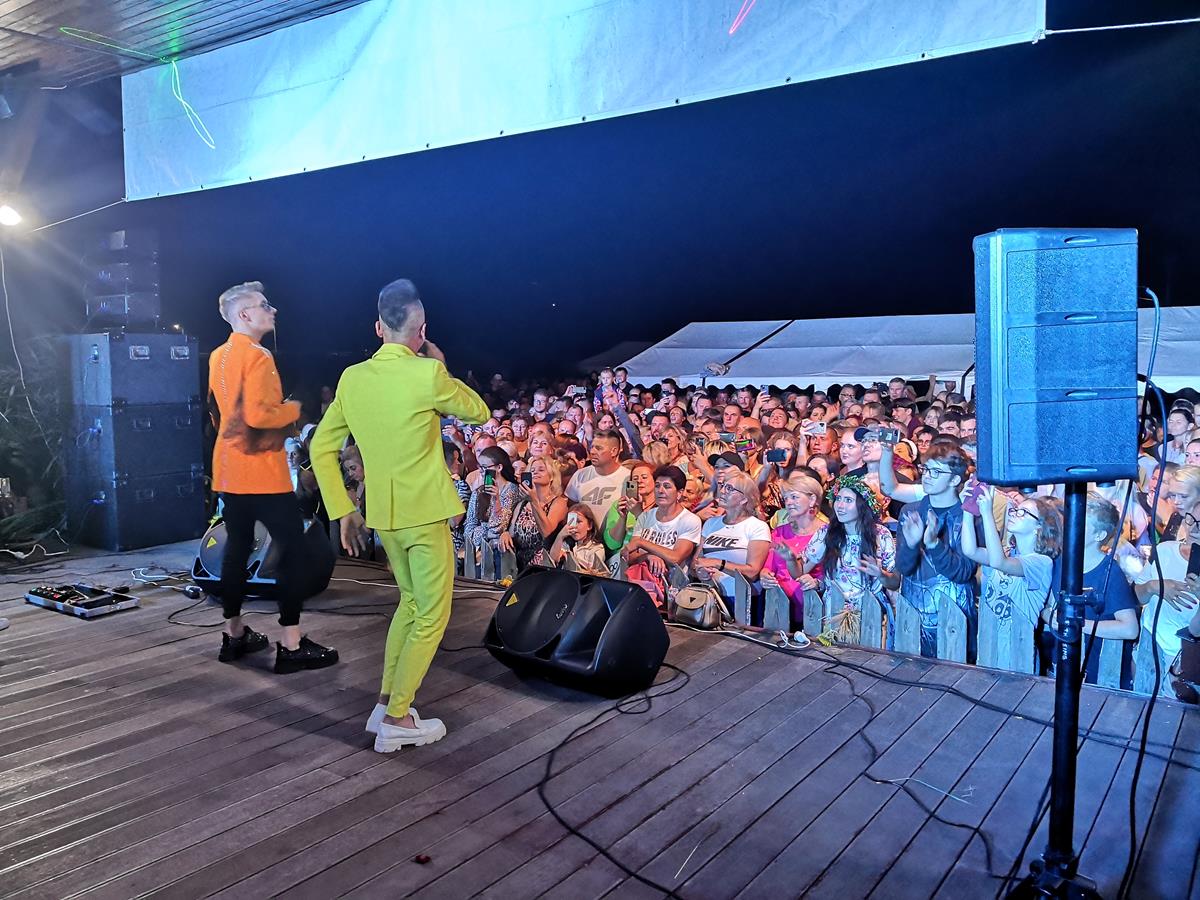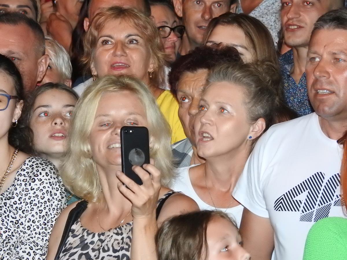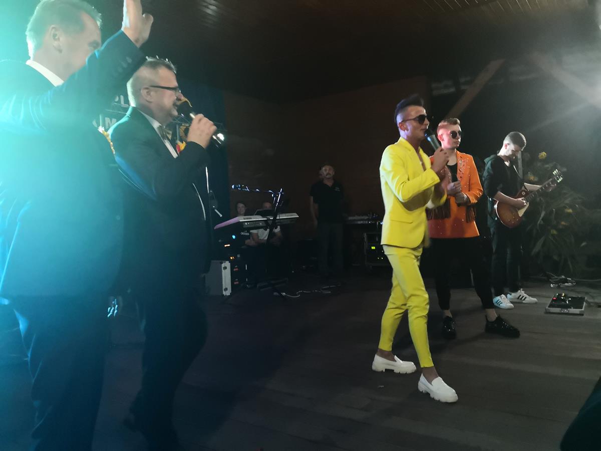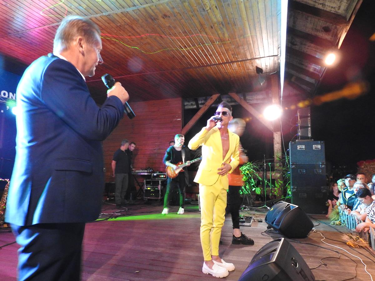 Wszyscy znakomicie się bawili przy muzyce zespołu REVEL, a występ gwiazdy wieczoru, kultowego zespołu Milano, jednego z czołowych przedstawicieli nurtu polskiej muzyki tanecznej’, rozgrzał i tak już gorącą atmosferę do czerwoności! W trakcie występu, lider zespołu, Mirosław Alan Trzciński’ wyjawił ciekawą informację. Wyznał, że nie jest to jego pierwszy pobyt w 1000-letniej Wiślicy. Utalentowany wykonawca’ wyjawił, że co najmniej kilka razy już zdarzyło mu się przejeżdżać prywatnie przez gród Wiślan i robić tu zakupy, jednak za żadnym razem nie został rozpoznany. Można się spodziewać, że po tak wysokoenergetycznym dożynkowym show w wykonaniu Milano, które zapewne na długo zapadnie w pamięci mieszkańców, to się chyba już nie powtórzy 🙂