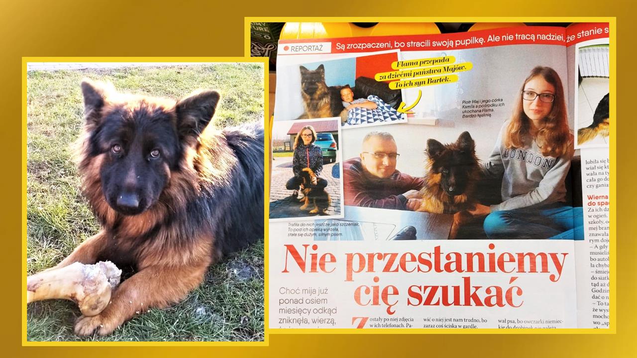 „Nie przestaniemy cię szukać”. ED: Flama dalej zaginiona. Kto widział owczarka niemieckiego? Apel o pomoc, duża nagroda