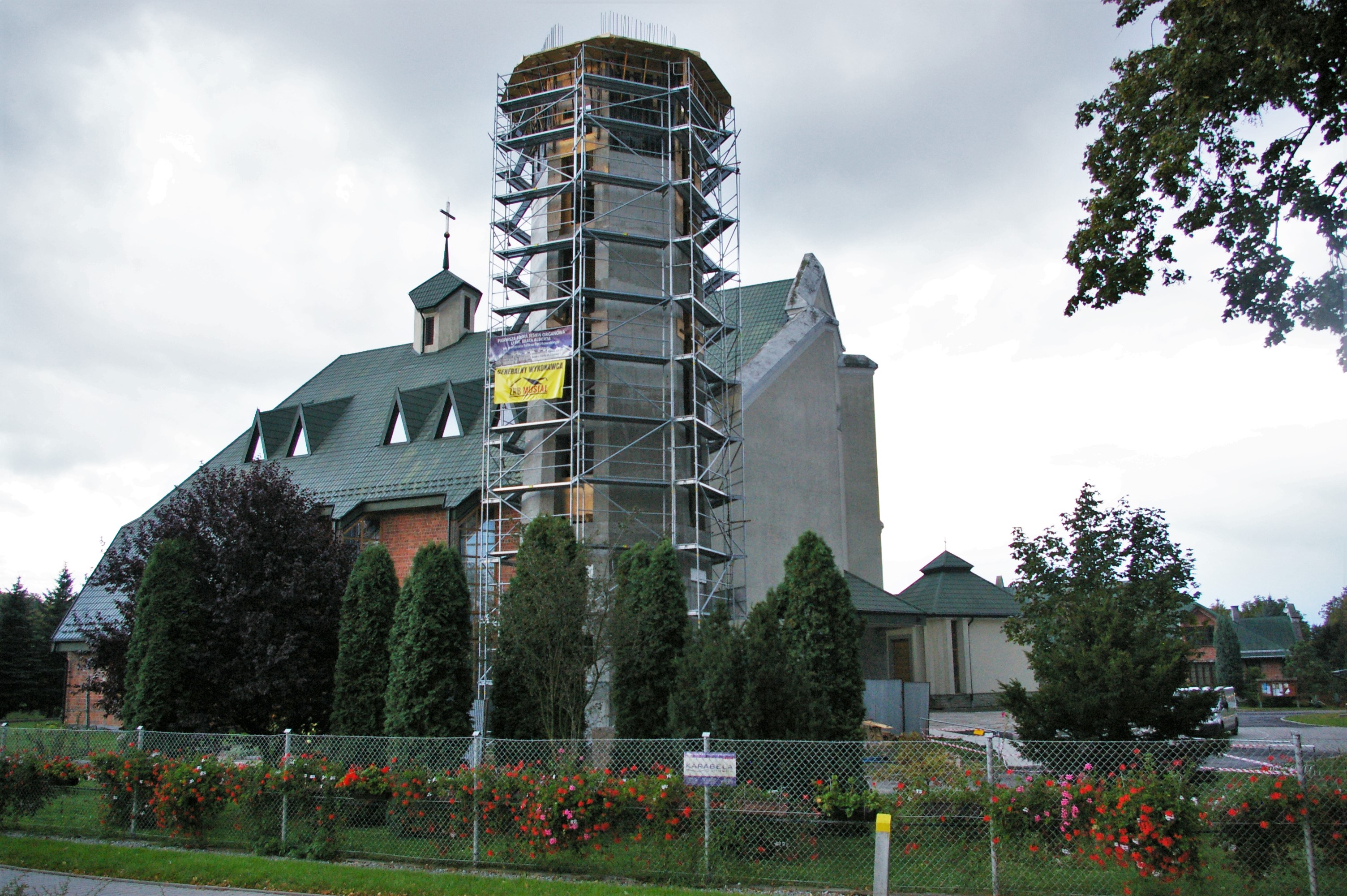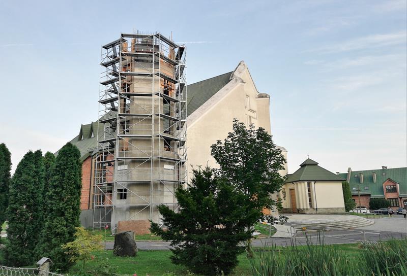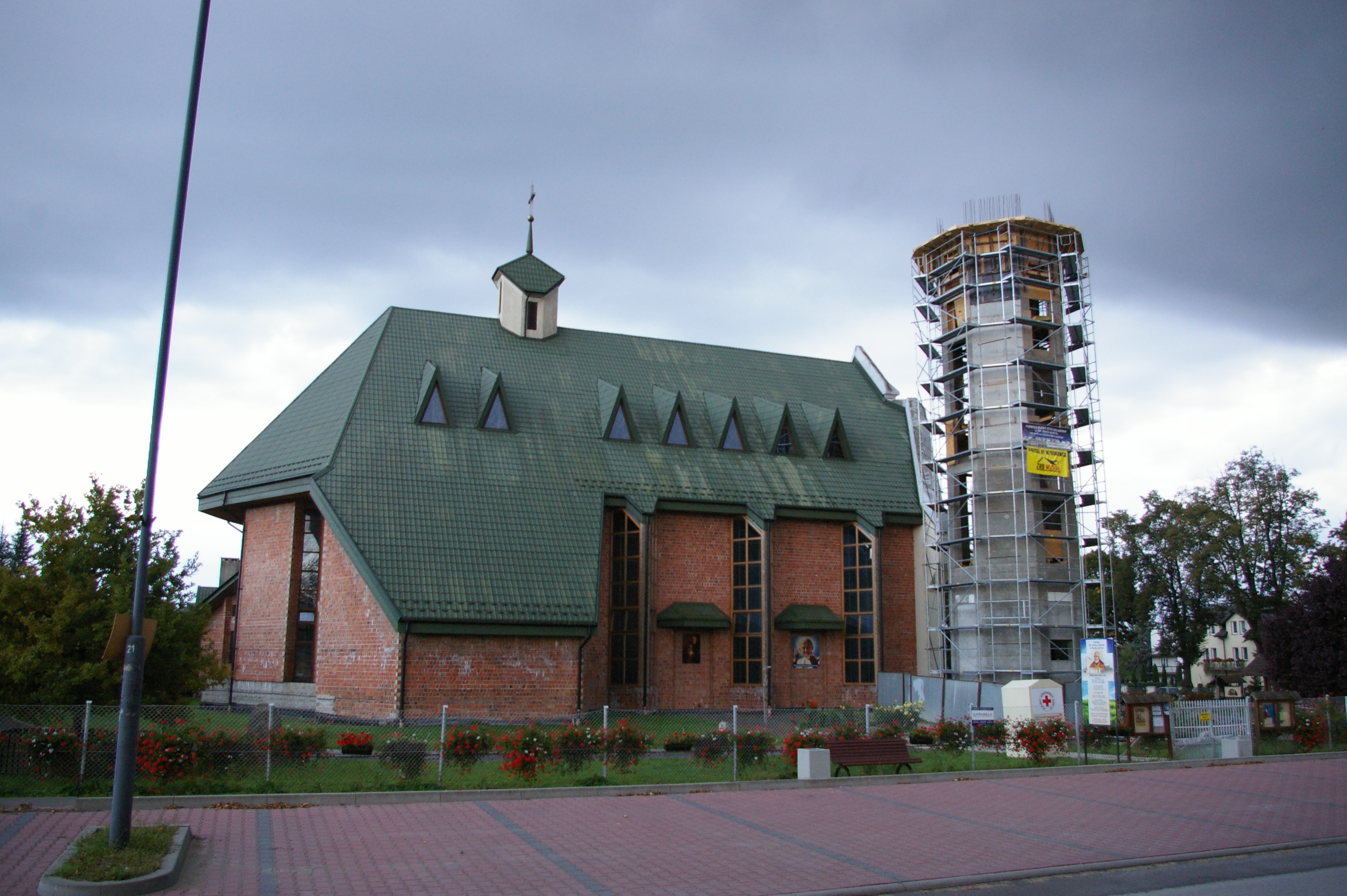 ED: Większa… niż kościół. Pnie sięw górę dzwonnica przy buskim kościele świętego Brata Alberta