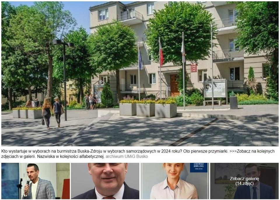 Kto wystartuje w wyborach na burmistrza Buska-Zdroju w 2024? W Busku-Zdroju lista potencjalnych kandydatów krążąca w kuluarach jest dość obszerna. Pojawiło się sporo nowych nazwisk. Zobacz w galerii zdjęć. – informuje 13.10.2022 portal Echo Dnia