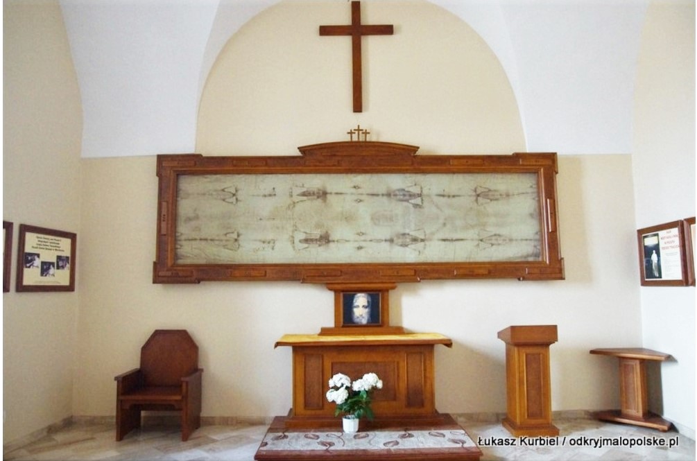 Wierną kopię Całunu Turyńskiego – najbliżej Buska – można oglądać w należącym do Diecezji kieleckiej’ Sanktuarium Grobu Bożego w Miechowie’.