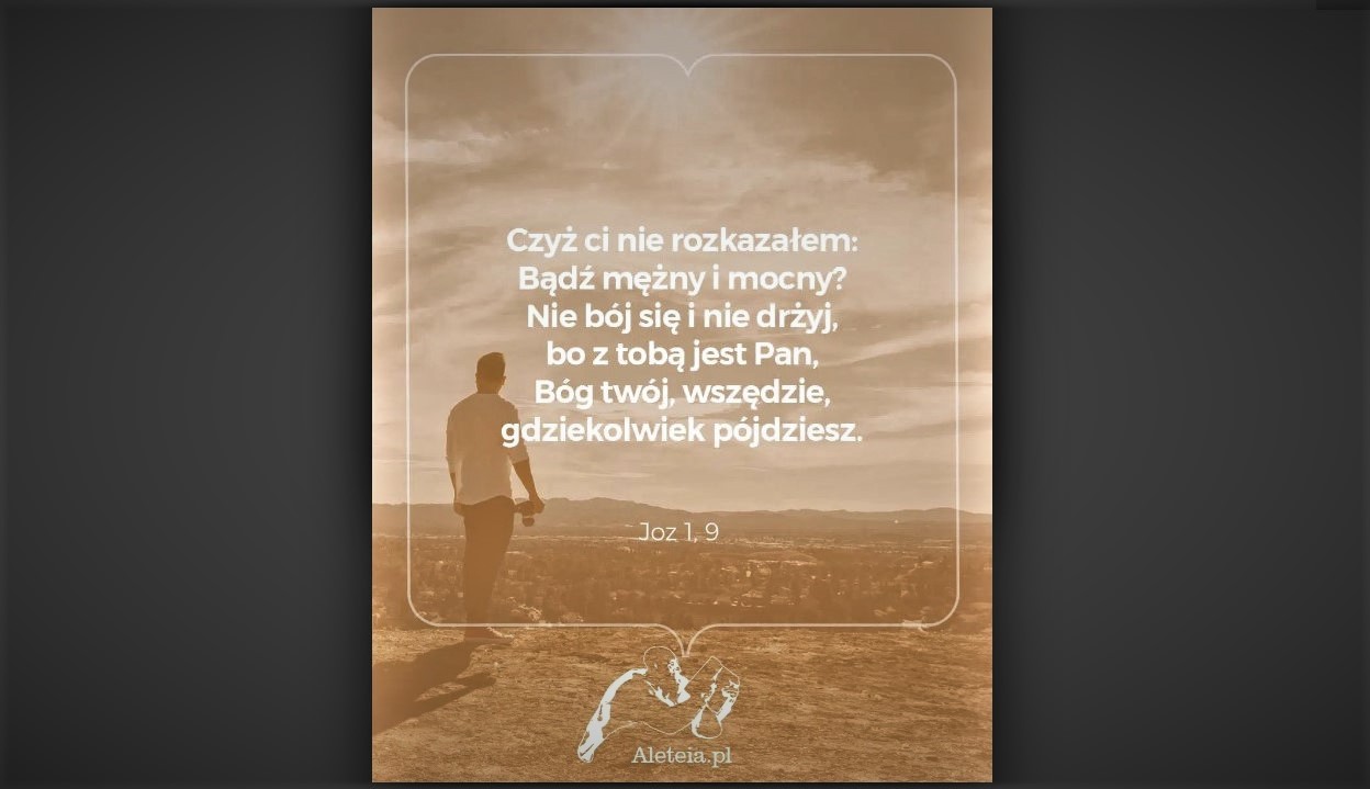 ○ ALETEIA♂: Cytat z Biblii dla ciebie na dziś 18 kwietnia. Gdziekolwiek idziesz, cokolwiek jest przed tobą, cokolwiek cię czeka – nie bój się przyszłości. Nie bój się, bo Pan jest przy tobie, wesprze cię i pomoże przejść przez każdą trudność. Jeśli czytanie Słowa Bożego jest pokarmem dla naszej duszy, to niech ten króciutki fragment będzie dla ciebie przystawką przed dłuższą lekturą Pisma Świętego. Każdego dnia na Aleteia.pl znajdziesz nową cząstkę duchowej strawy. ♂