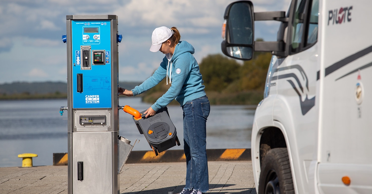 Pod pojęciem podstawowego serwisu kampera kryje się usługa polegająca na opróżnieniu zbiorników szarej (mydliny) i czarnej wody (toaleta) oraz zatankowanie czystej wody. Bywa, że instalacje te oferują doładowanie prądu czy też odbiór śmieci. Na zachodzie takie stanowiska serwisowe spotkamy przy każdej większej miejscowości. Niektóre są ogólnodostępne, w innych należy wrzucić kilka euro za pobór wody.