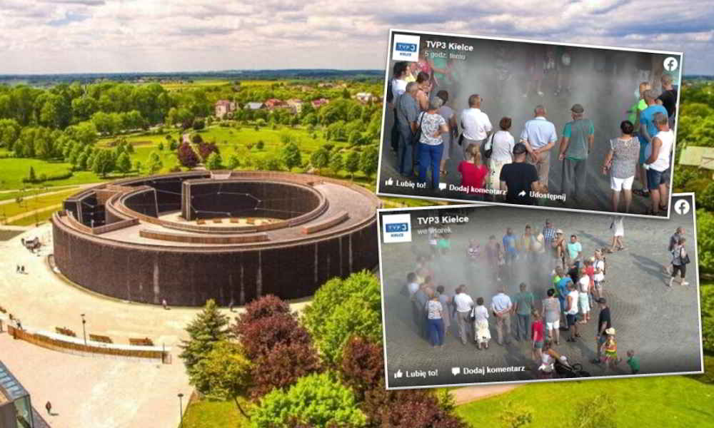 „Zapytaliśmy o to pracowników obiektu. Okazało się, że to normalna fontanna. Akurat tej wody nie zaleca się wdychać ani pić, bo jest w obiegu zamkniętym. Ale chwilkę ochłodzić się w taki gorąc jak dzisiaj można” – napisano w kolejnym poście opublikowanym na fb profilu TVP3♂.