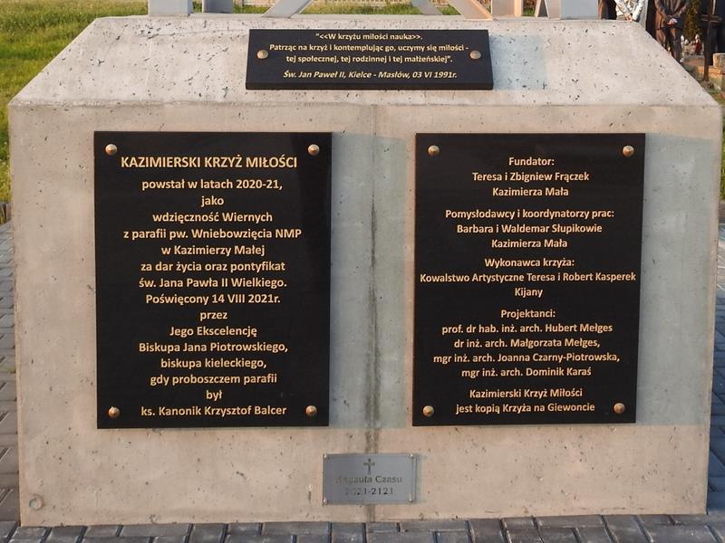 – To solidna konstrukcja. Według zapewnień konstruktorów, projektantów i wykonawców ma wytrzymać minimum 100 lat, a nawet więcej – zaznacza ksiądz Krzysztof Balcer, proboszcz Parafii Wniebowzięcia Najświętszej Maryi Panny w Kazimierzy Małej, dodając, iż kazimierski krzyż ma być „krzyżem miłości”. – Nieoficjalnie zostało przyjęte, że krzyż na Giewoncie to jest „krzyż wiary”. Drugi krzyż – wierna kopia w Pustkowiu nad morzem, został nazwany „krzyżem nadziei”. Z trzech cnót boskich została nam zatem miłość – zaznacza duchowny. Odsłonięcie i poświęcenie krzyża odbyło się…cd. w artykule na źródłowej stronie Radia Kielce