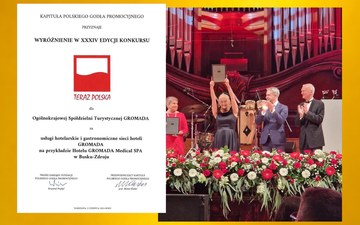 GROMADA wśród laureatów i wyróżnionych firm w XXXIV edycji Konkursu „Teraz Polska” na najlepsze polskie produkty, usługi i innowacje. – informuje 04.06.2024 na swoim fb profilu buski Hotel Gromada Medical SPA